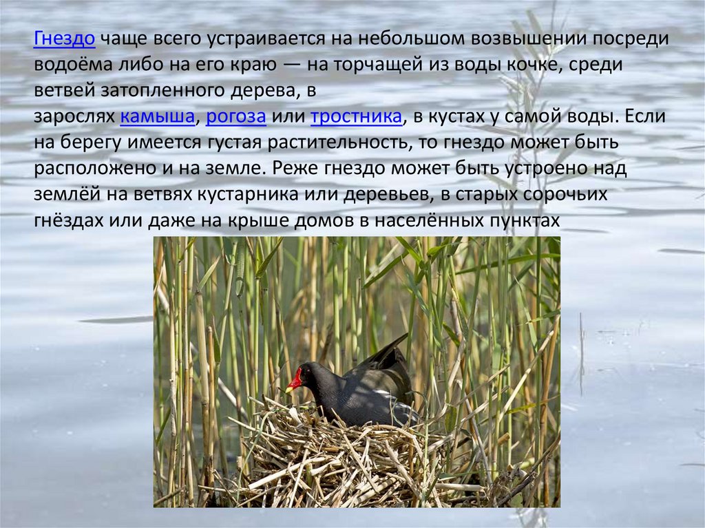 другого выступающего из воды растения. Обычно гнездо своим