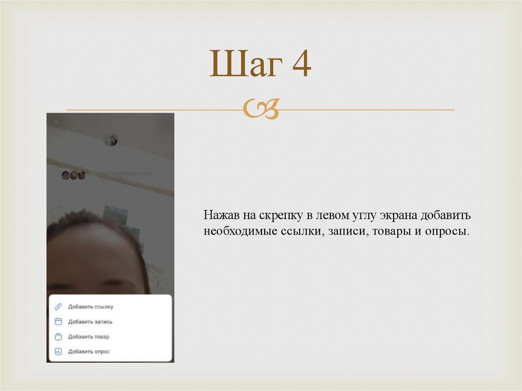 Шаг 4Нажав на скрепку в левом углу экрана добавить