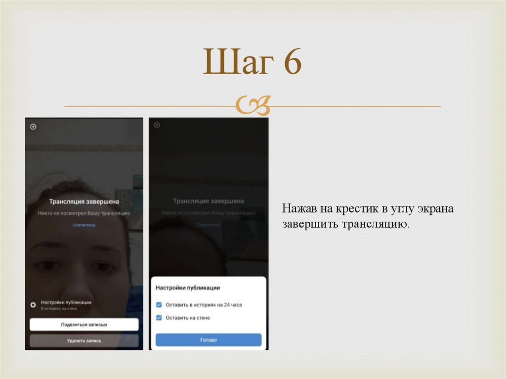 завершить трансляцию.
