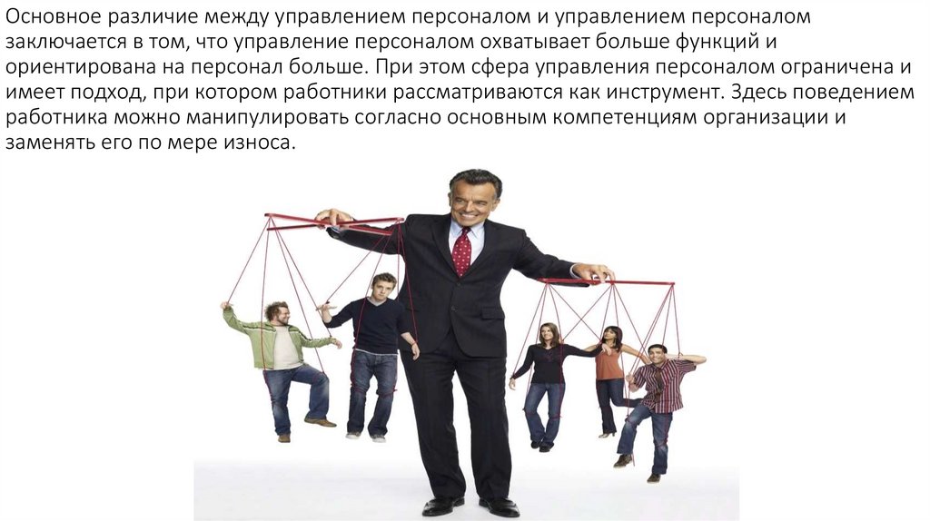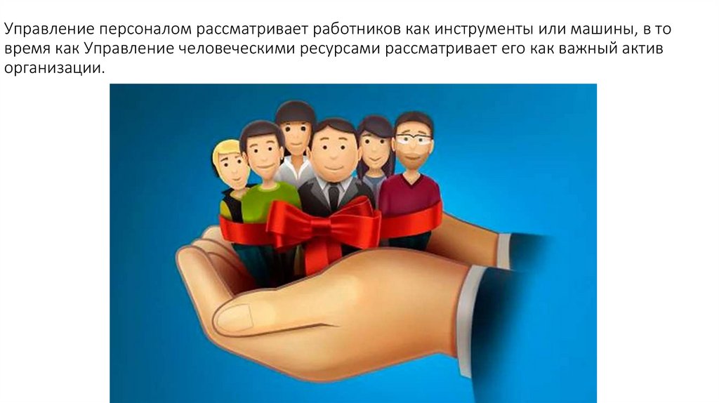 Управление персоналом рассматривает работников как инструменты или машины, в товремя как Управление человеческими ресурсами рассматривает его как важный актив