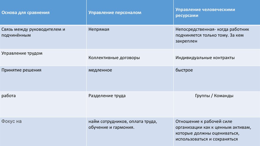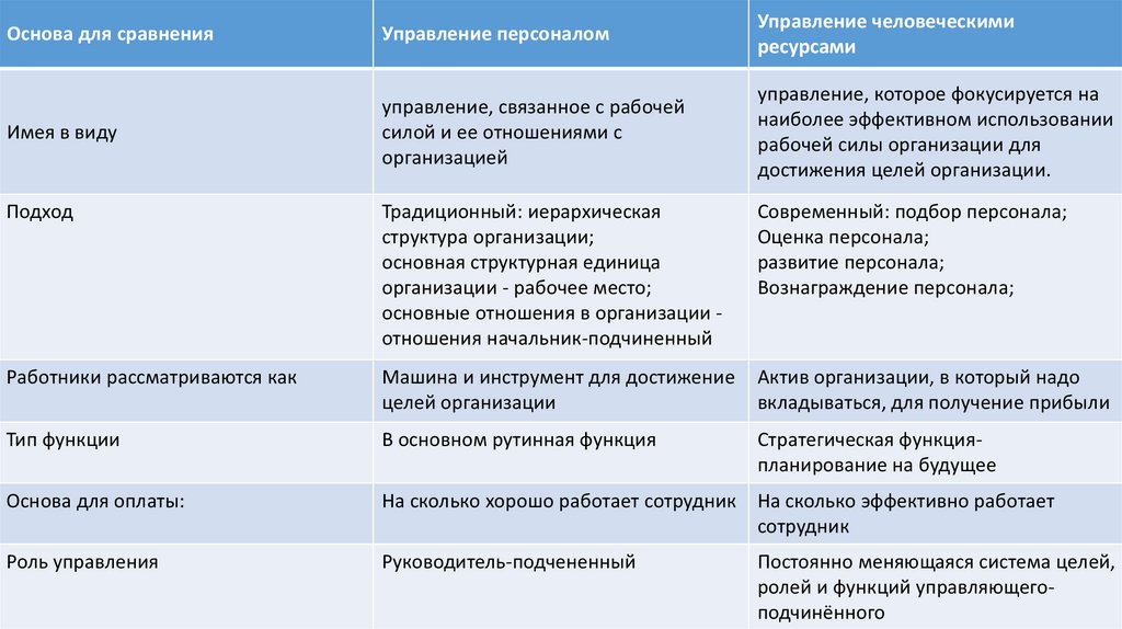 Основные различия между управлением персоналом и управлением человеческими ресурсами:Часть управления, которая имеет дело с рабочей силой в пределах предприятия, известна как