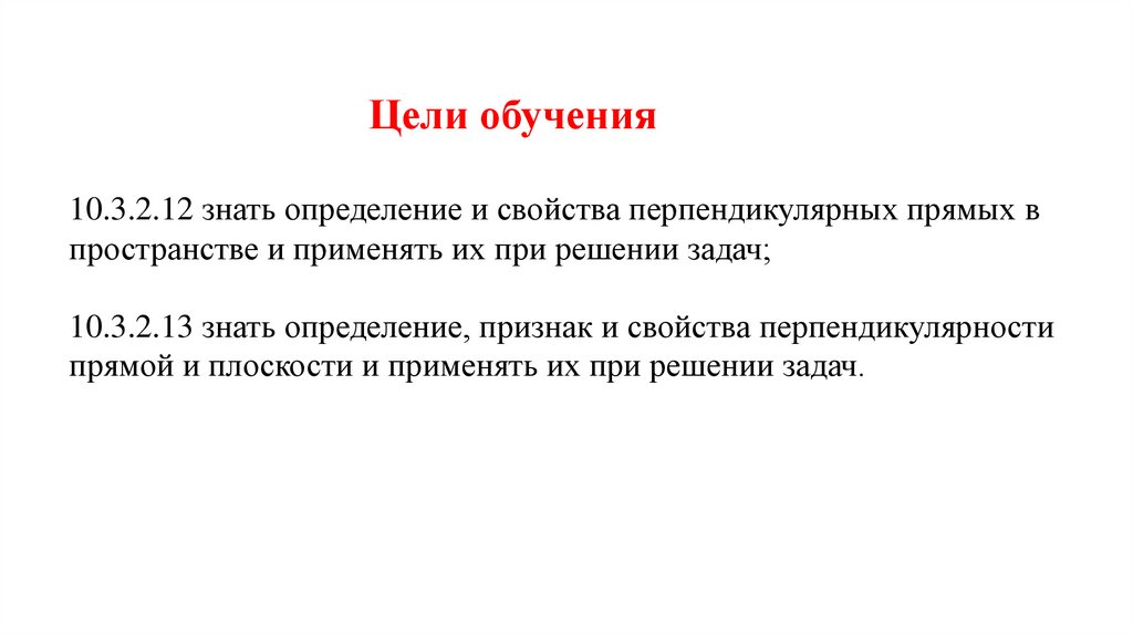 Цели обучения10.3.2.12 знать определение и свойства перпендикулярных прямых в