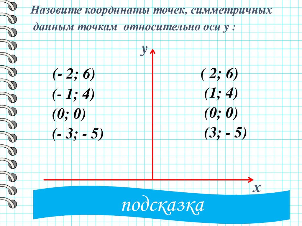 Назовите координаты точек, симметричныхданным точкам относительно оси y :