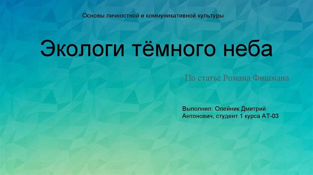 Основы личностной и коммуникативной культурыЭкологи тёмного неба