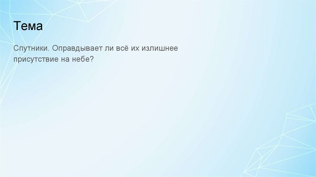 ТемаСпутники. Оправдывает ли всё их излишнее