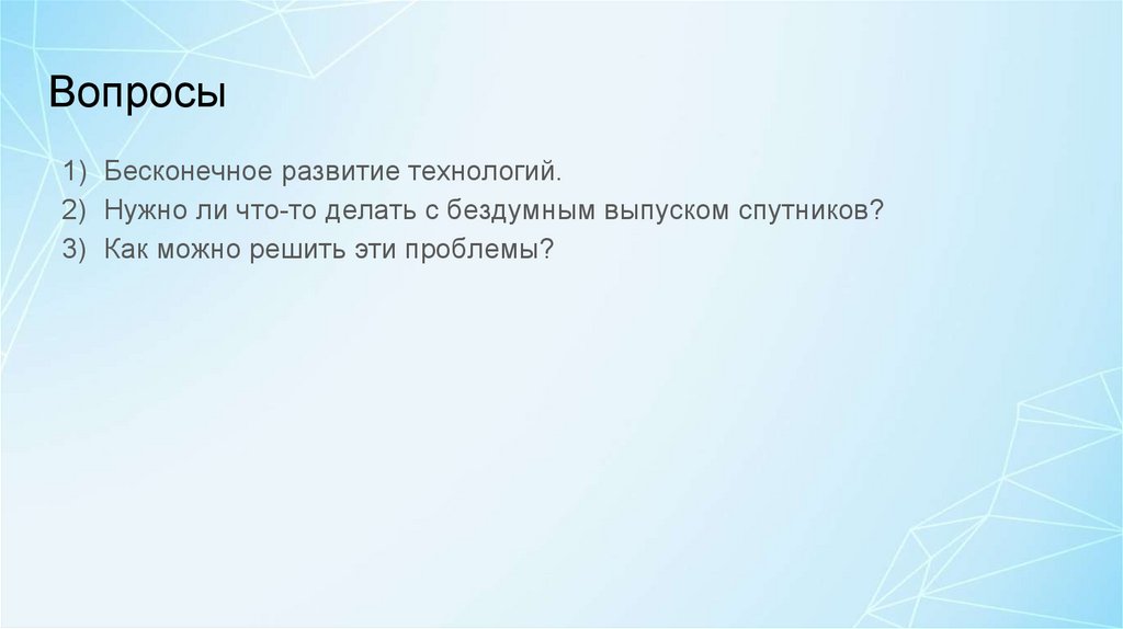 Вопросы1) Бесконечное развитие технологий.