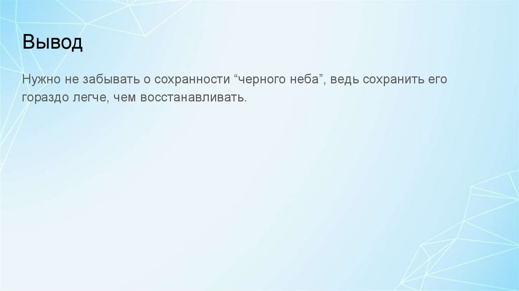 ВыводНужно не забывать о сохранности “черного неба”, ведь сохранить его