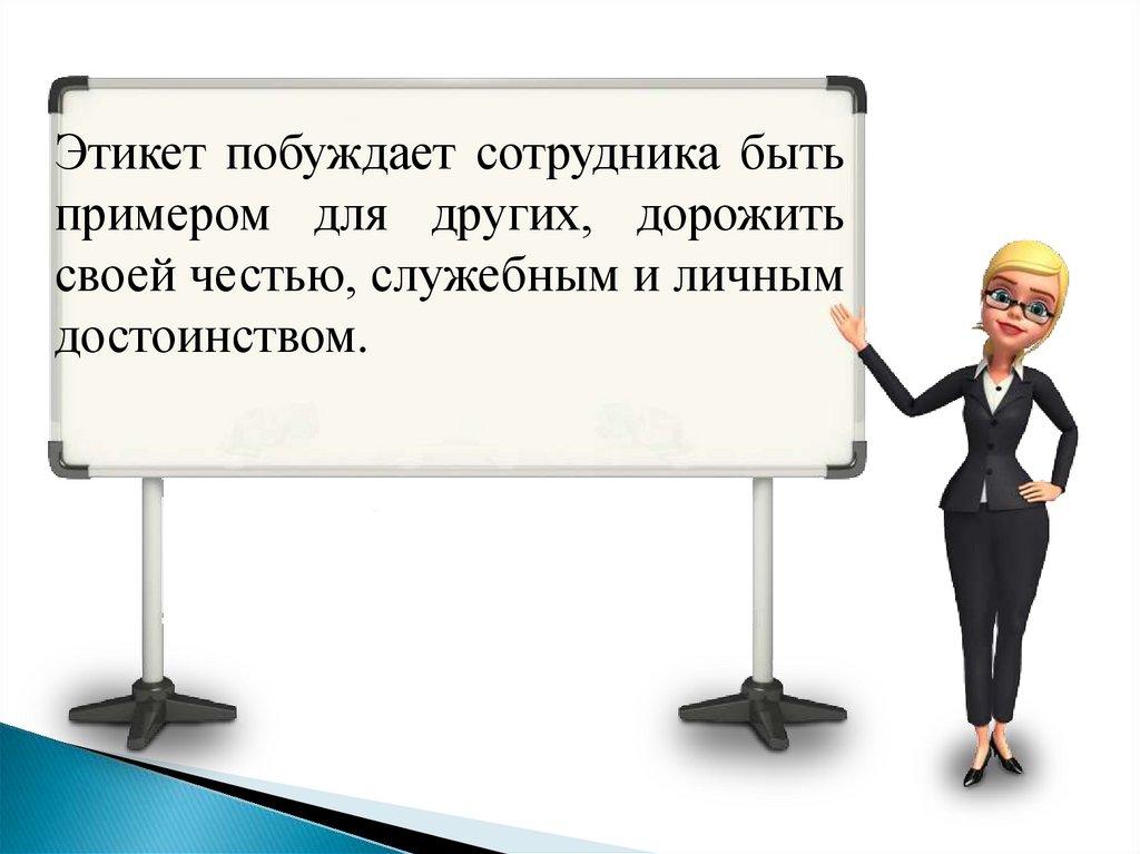 Этикет побуждает сотрудника бытьпримером для других, дорожить