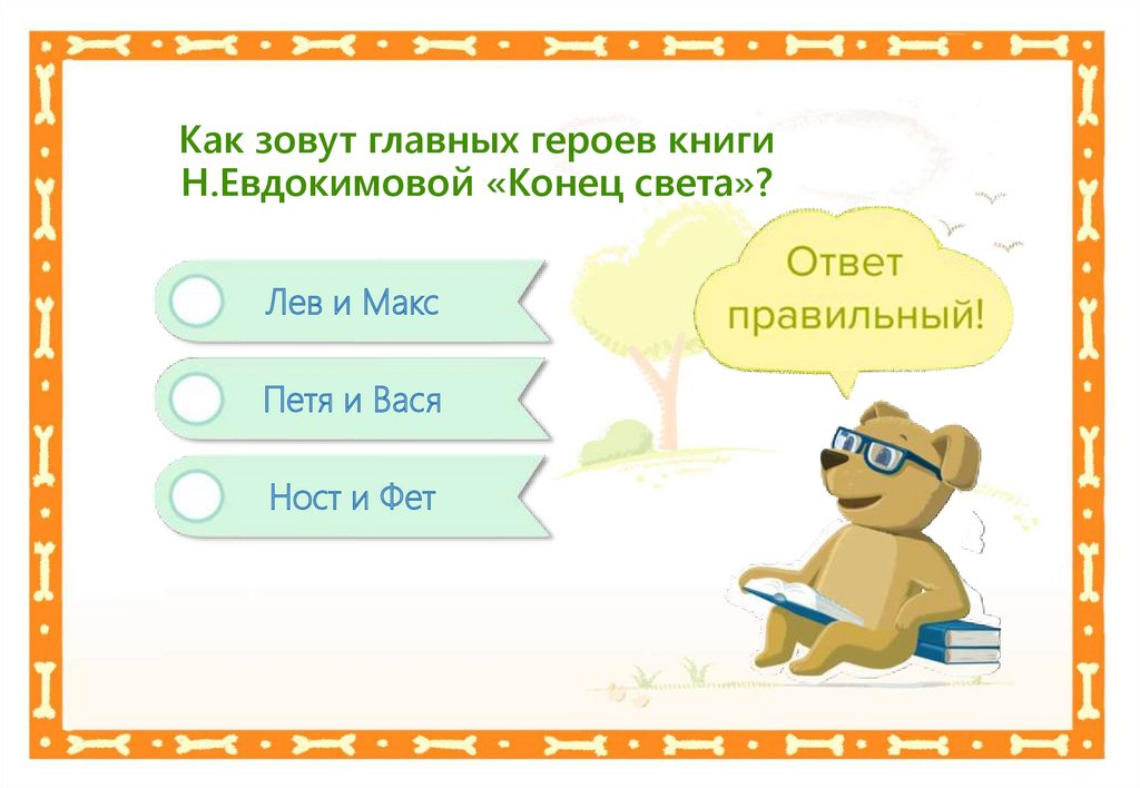 Как зовут главных героев книгиН.Евдокимовой «Конец света»?