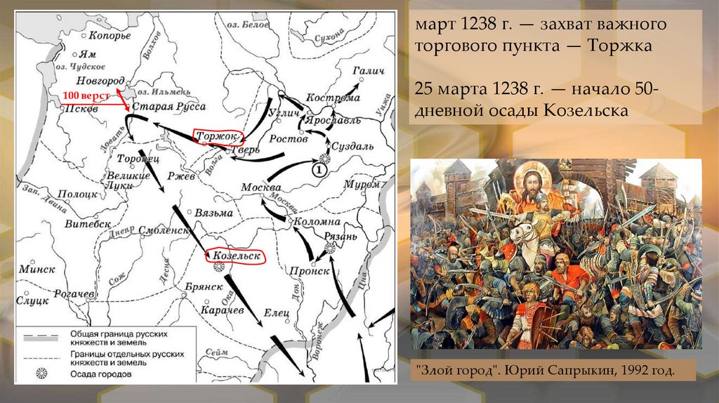 март 1238 г. — захват важноготоргового пункта — Торжка