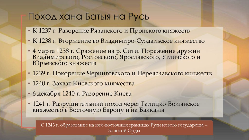 • 1239 г. Покорение Черниговского и Переяславского княжеств