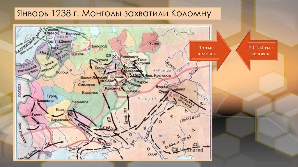 Январь 1238 г. Монголы захватили Коломну15 тыс.