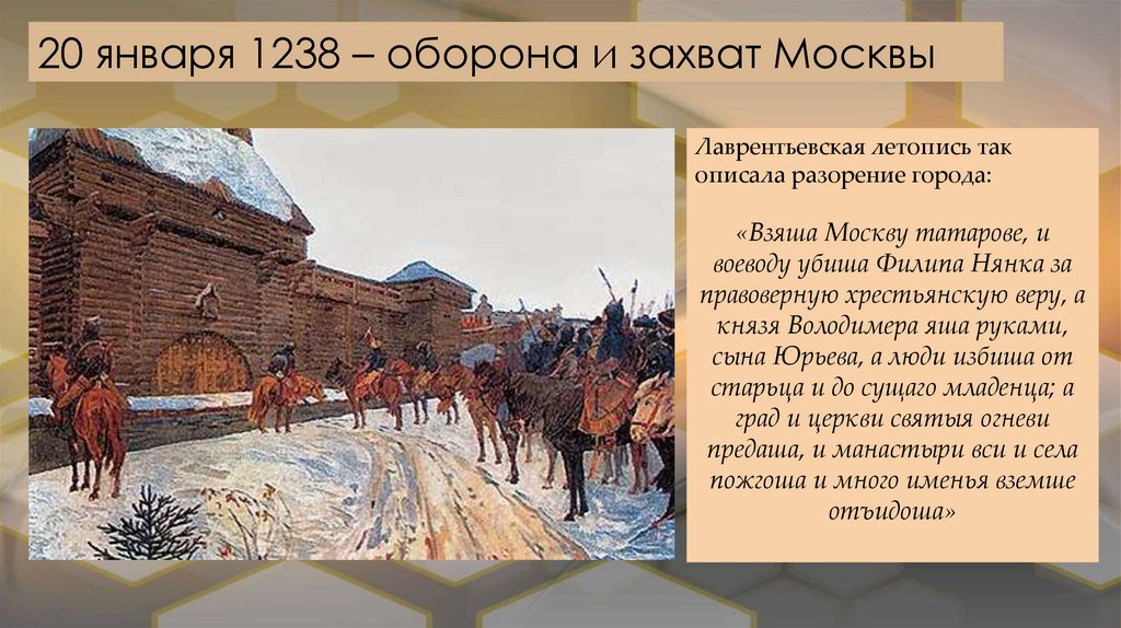 20 января 1238 – оборона и захват МосквыЛаврентьевская летопись так