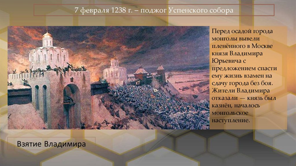 7 февраля 1238 г. – поджог Успенского собораПеред осадой города