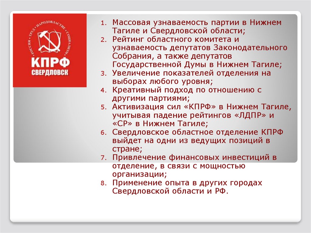 11. Что необходимо от Свердловского областного отделения КПРФ?