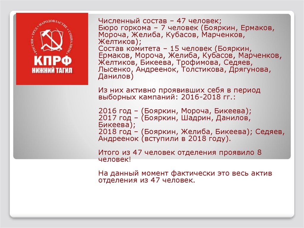 План работы Нижнетагильского местного отделения КПРФ на 2018-2021 г