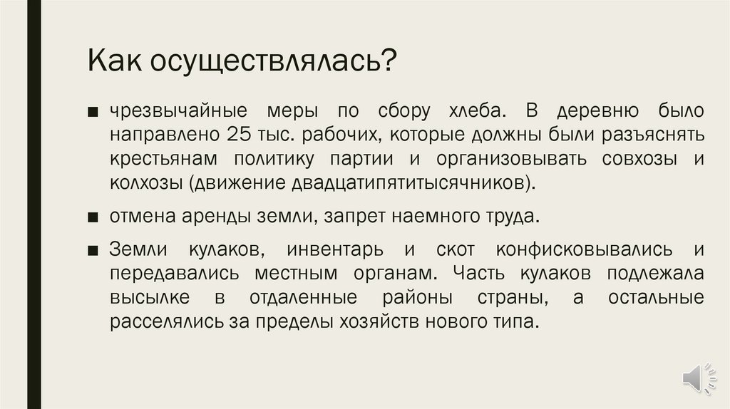 Как осуществлялась?■ чрезвычайные меры по сбору хлеба. В деревню было