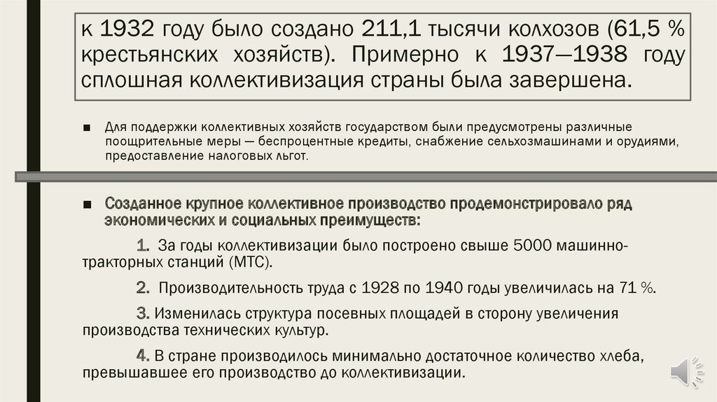 ■ Для поддержки коллективных хозяйств государством были предусмотрены различные