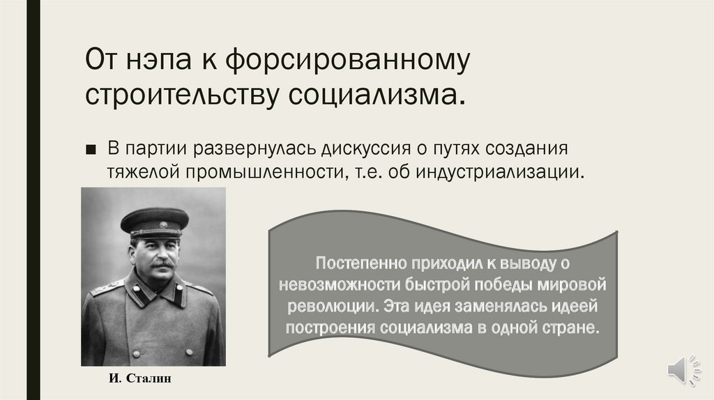 От нэпа к форсированномустроительству социализма.