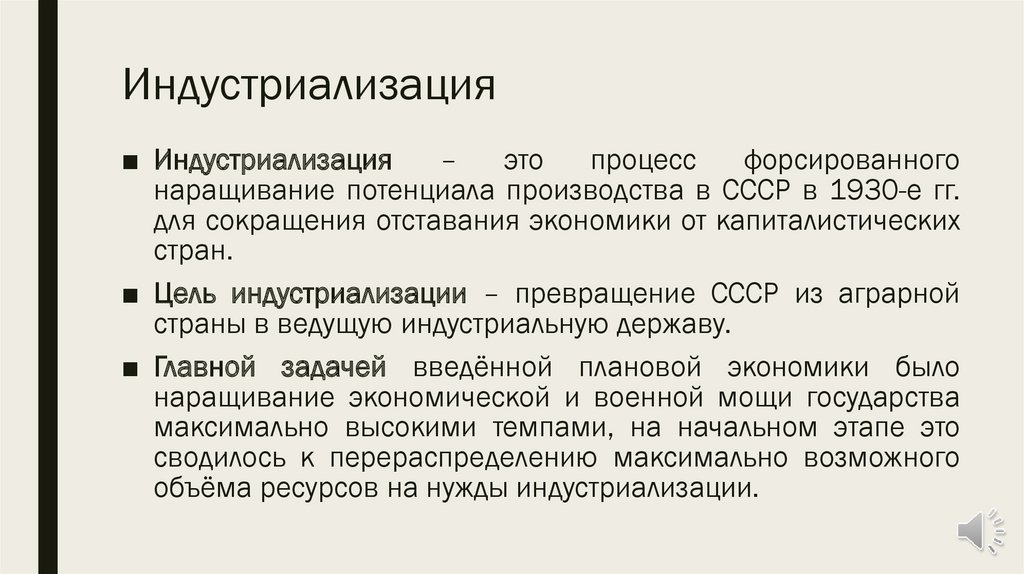 ■ Цель индустриализации – превращение СССР из аграрной