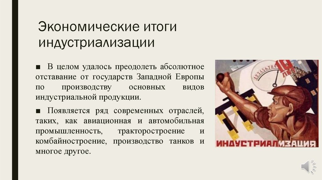 Экономические итогииндустриализации