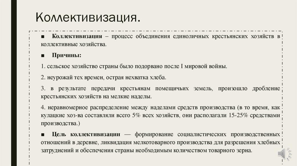 Коллективизация.■ Коллективизация – процесс объединения единоличных крестьянских хозяйств в