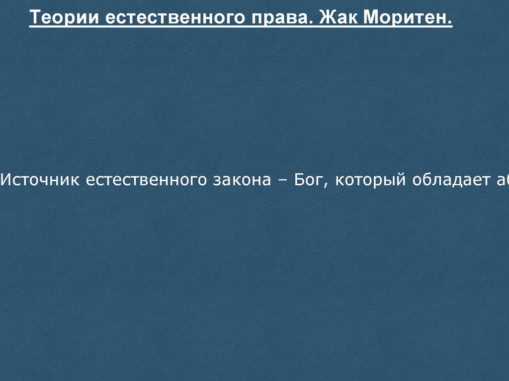 Теории естественного права. Жак Моритен.Источник естественного закона – Бог, который обладает аб