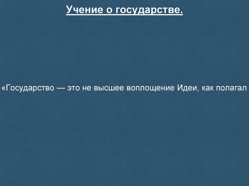 Учение о государстве.«Государство — это не высшее воплощение Идеи, как полагал Г