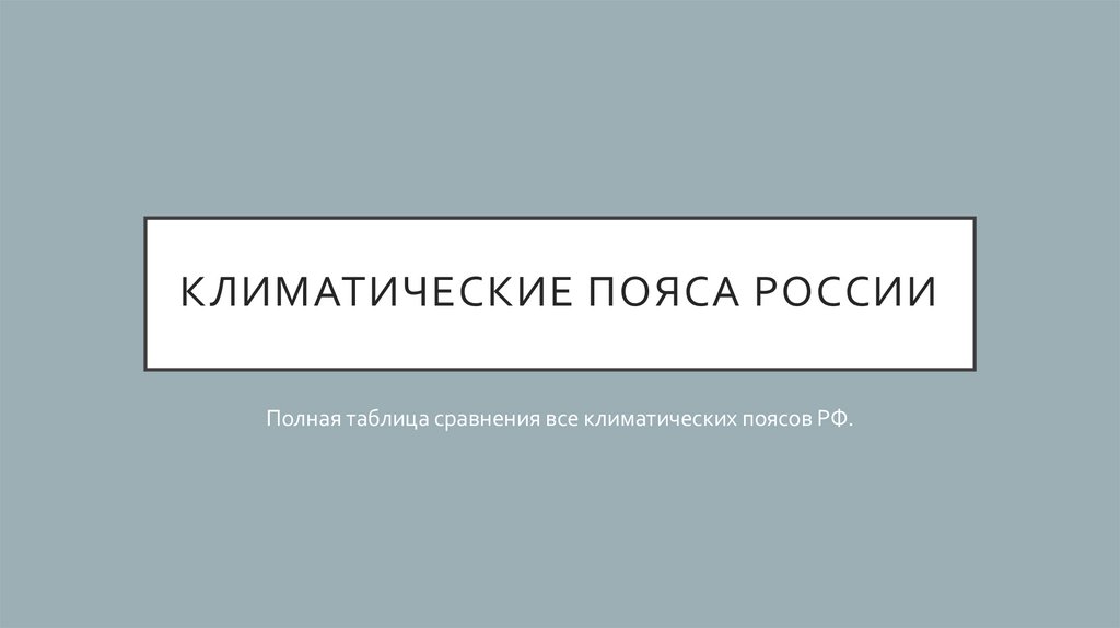 Полная таблица сравнения все климатических поясов РФ.