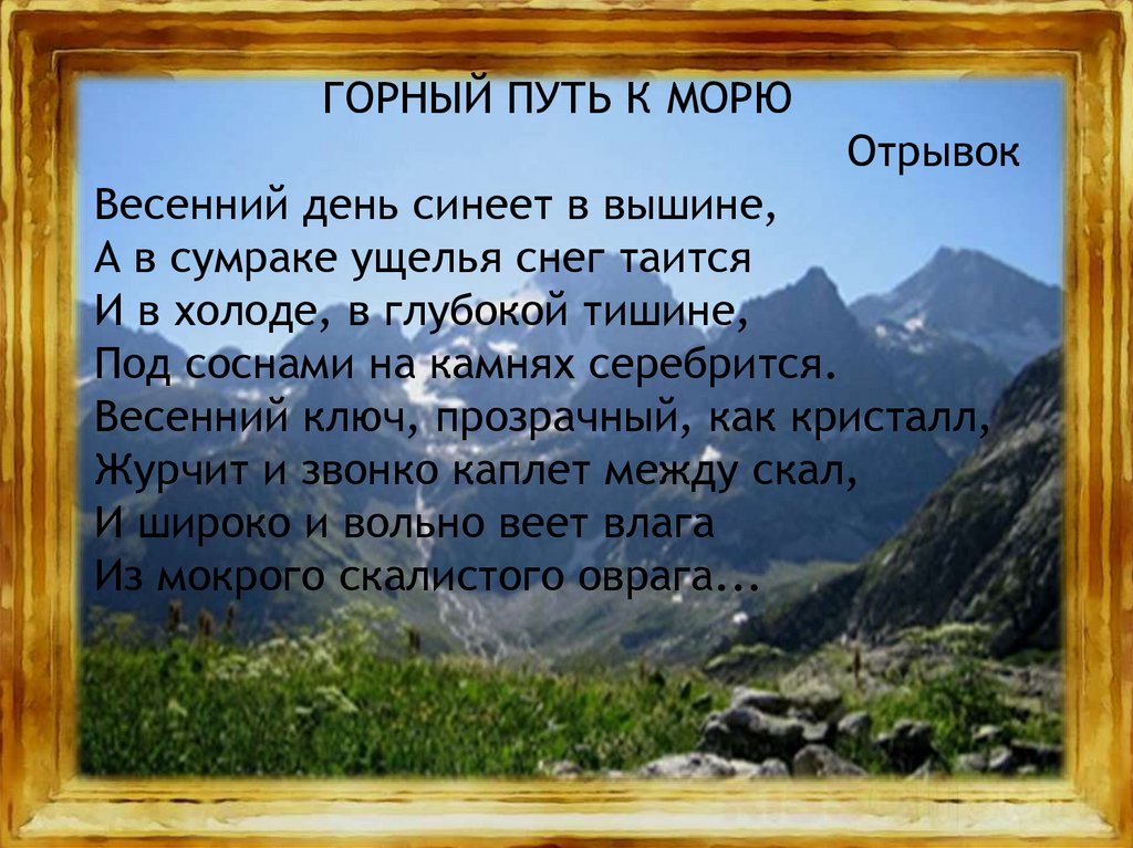ГОРНЫЙ ПУТЬ К МОРЮОтрывок