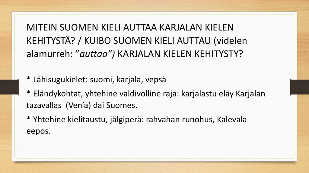 MITEIN SUOMEN KIELI AUTTAA KARJALAN KIELENKEHITYSTÄ? / KUIBO SUOMEN KIELI AUTTAU (videlen