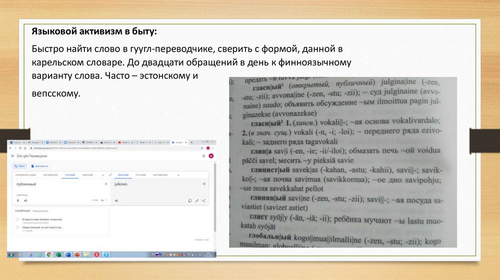 Языковой активизм в быту:Быстро найти слово в гуугл-переводчике, сверить с формой, данной в