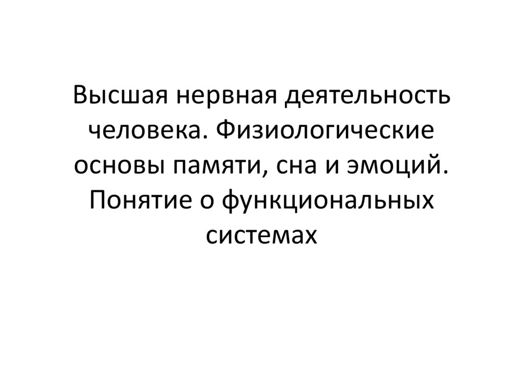Высшая нервная деятельность человека. Физиологические основы памяти, сна и эмоций. Понятие о функциональных системах