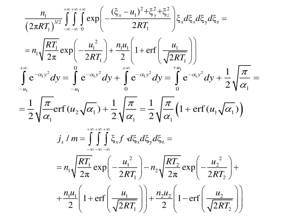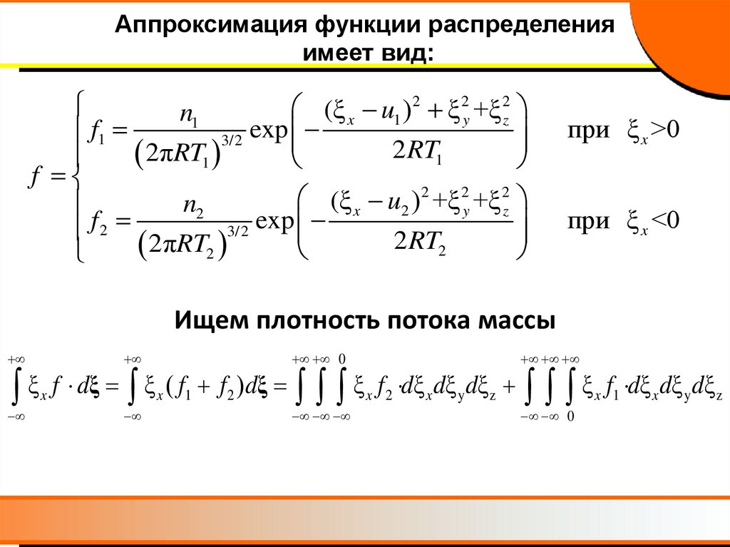 Разрывной максвеллиан со смещением. Аппроксимация функции распределения. Плотность потока массы