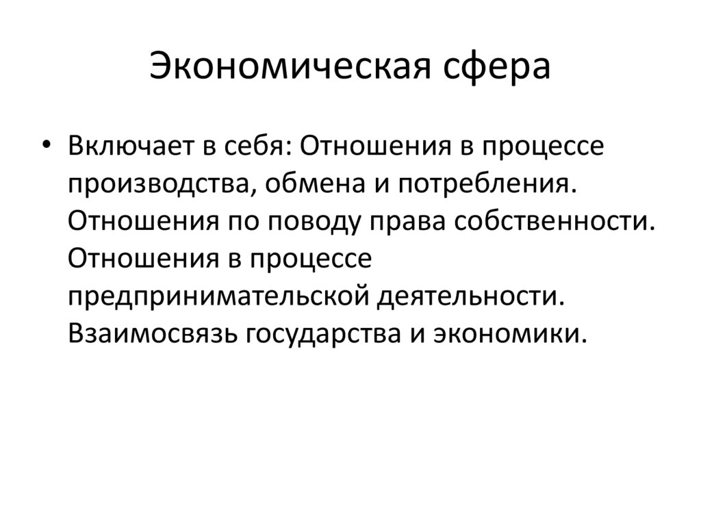 Экономическая сфера• Включает в себя: Отношения в процессе