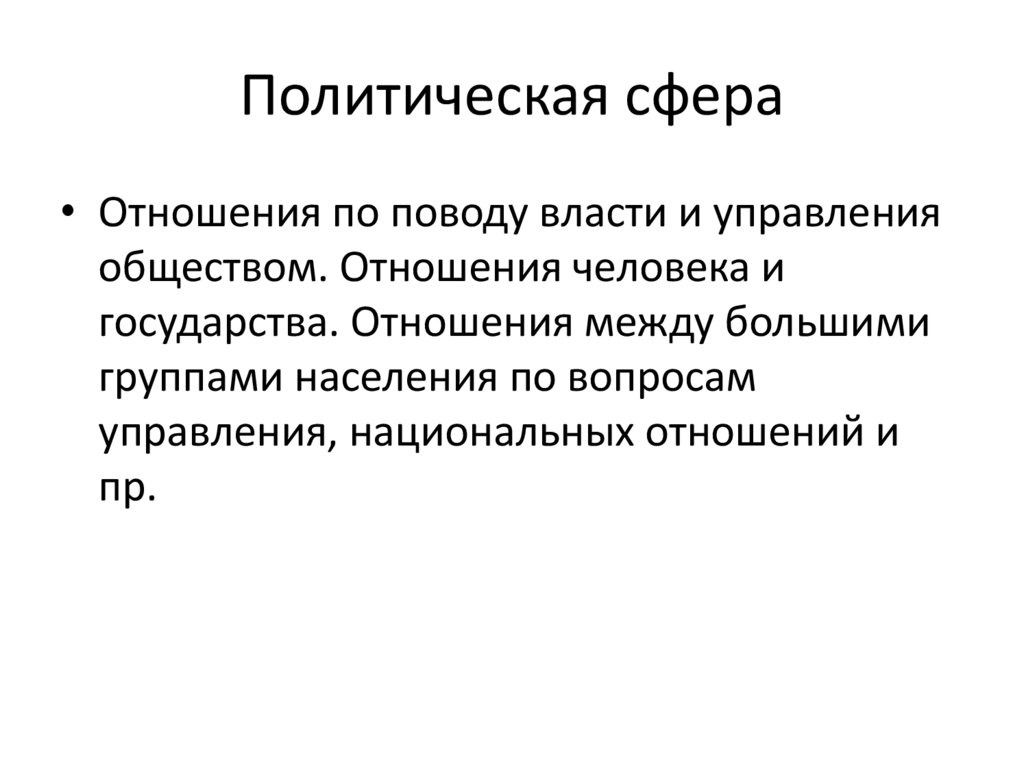 Политическая сфера• Отношения по поводу власти и управления