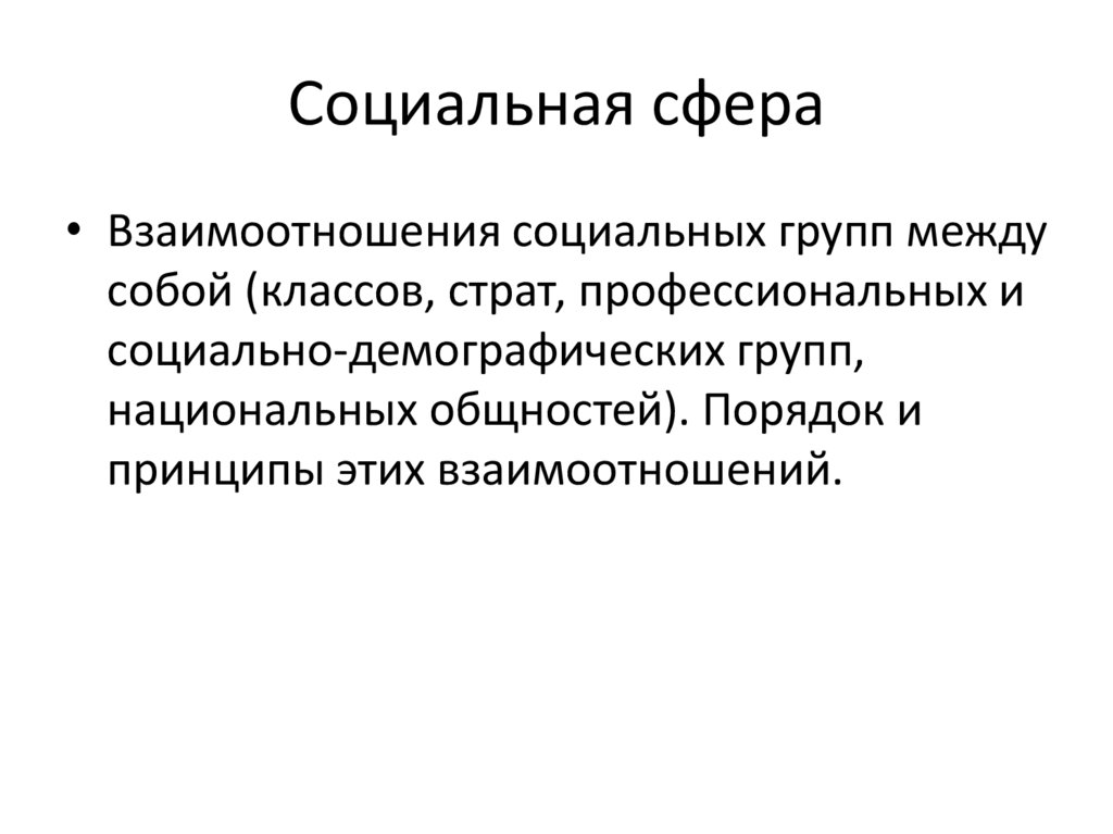 Социальная сфера• Взаимоотношения социальных групп между