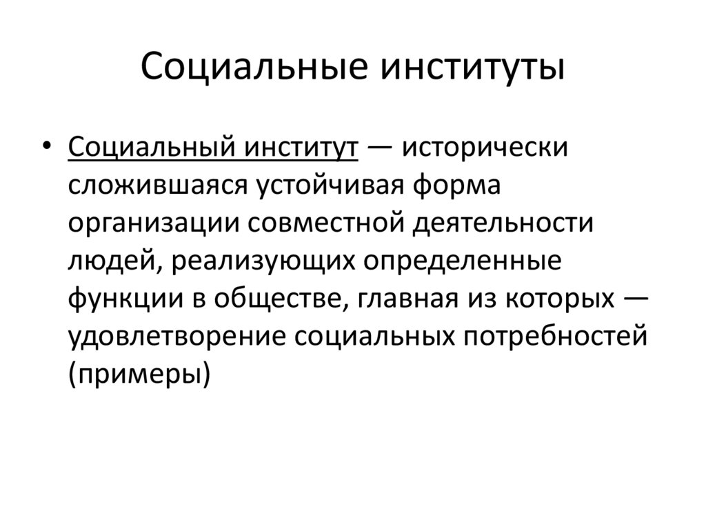 Социальные институты• Социальный институт — исторически