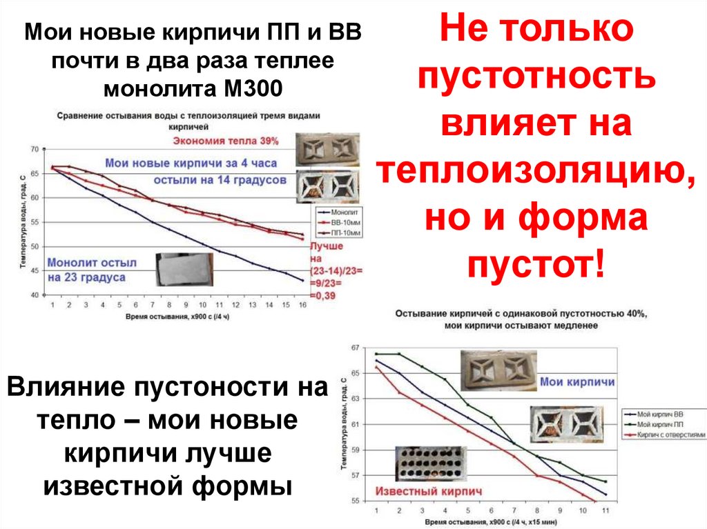 кирпичи с ячейками Штейнера на 39% теплее монолита