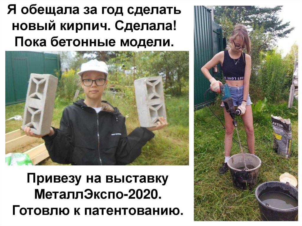 Новый пустотелый строительный кирпич. Изобретение Драцкой Альбины, 7 класс, кружок «Юный физик – умелые руки»