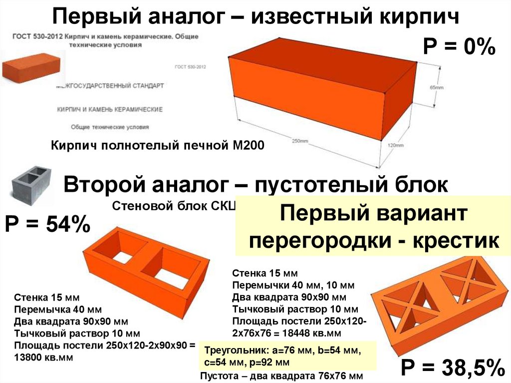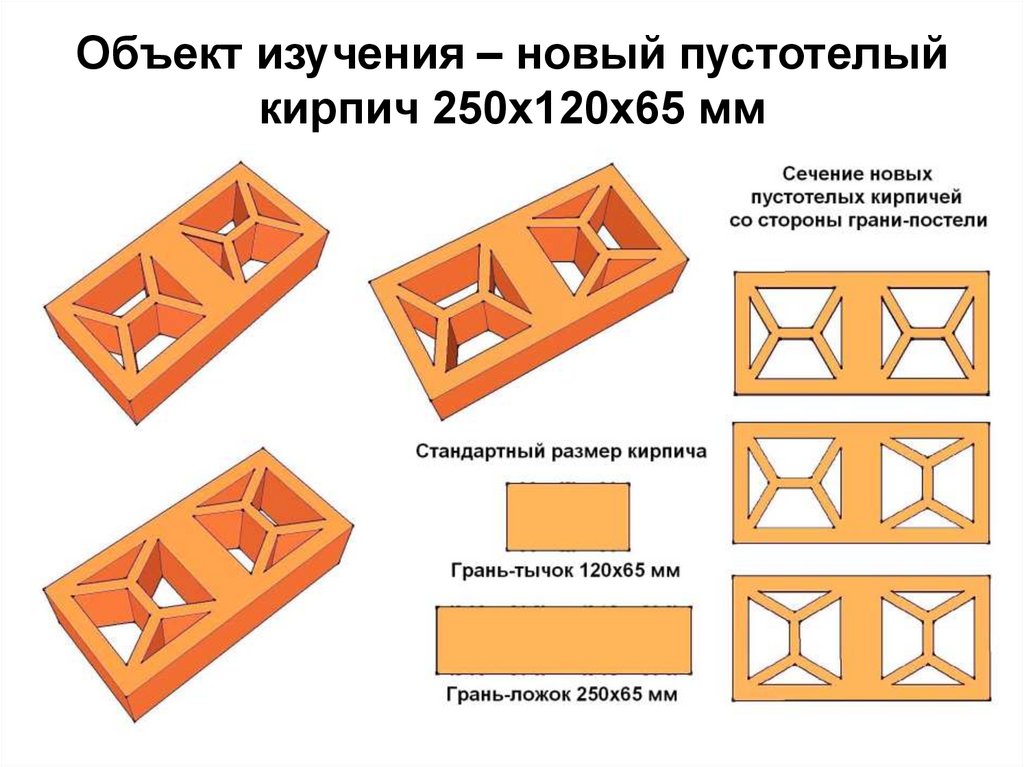 Объект изучения – новый пустотелыйкирпич 250х120х65 мм