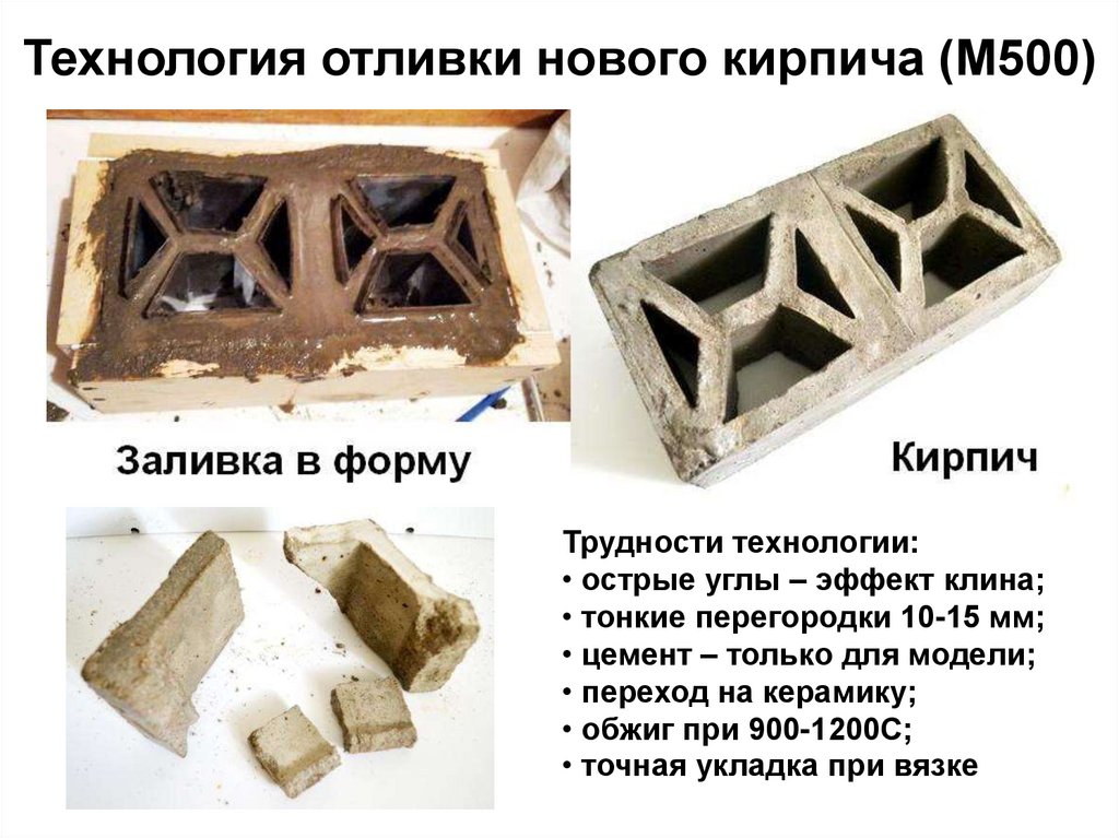 Технология отливки нового кирпича (М500)Трудности технологии: