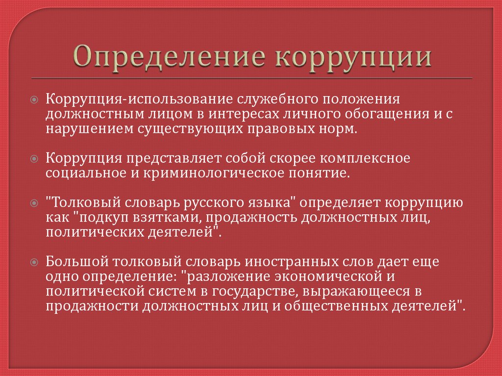 Понятие коррупции в