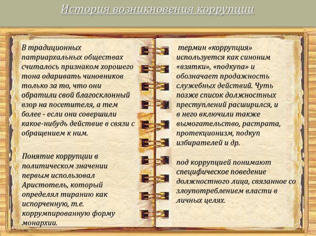 История возникновения коррупцииВ традиционных