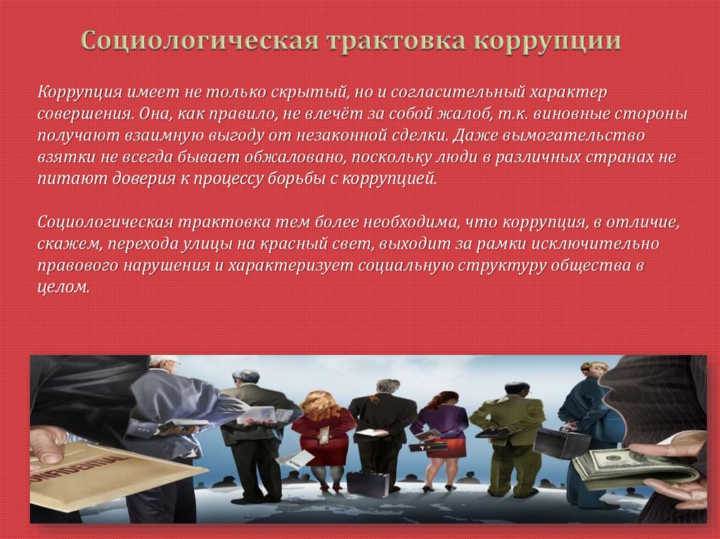 Социологическая трактовка тем более необходима, что коррупция, в отличие,
