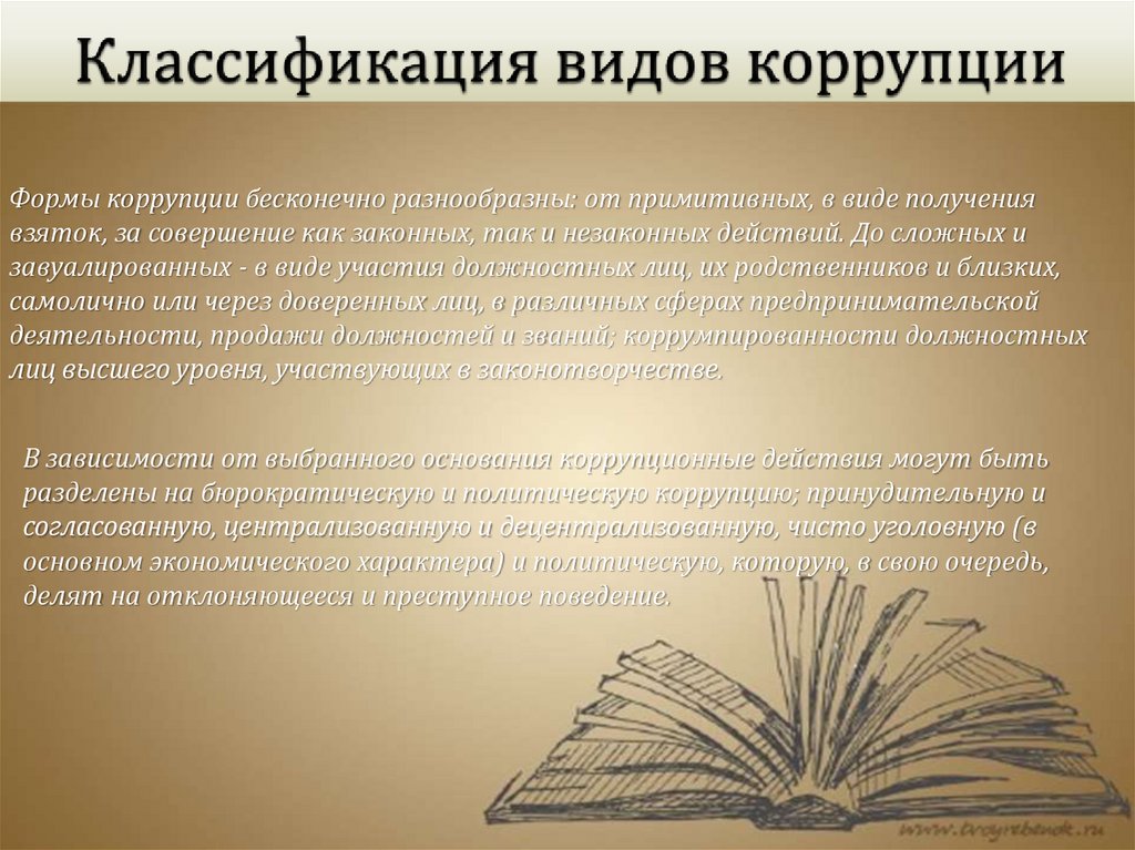 В зависимости от выбранного основания коррупционные действия могут быть
