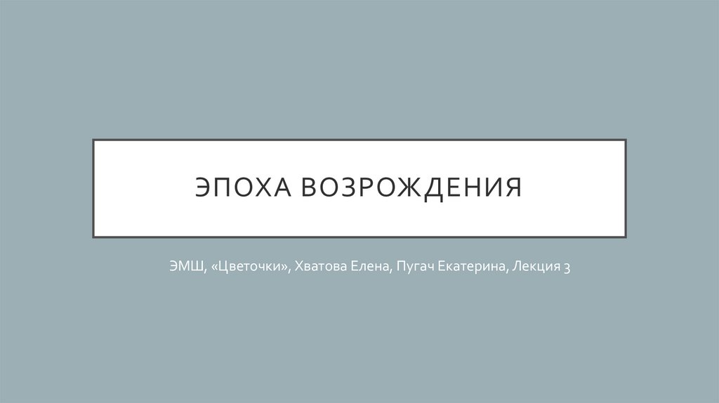 ЭПОХА ВОЗРОЖДЕНИЯЭМШ, «Цветочки», Хватова Елена, Пугач Екатерина, Лекция 3