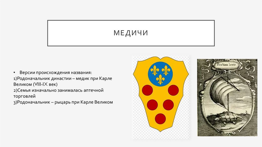 МЕДИЧИ• Версии происхождения названия: