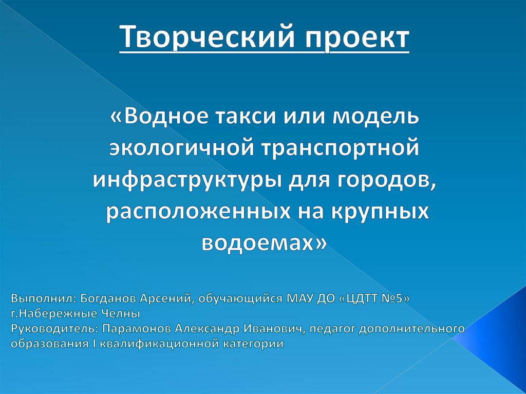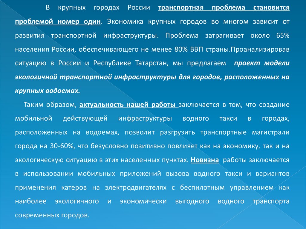 Водное такси или модель экологичной транспортной инфраструктуры для городов, расположенных на крупных водоемах