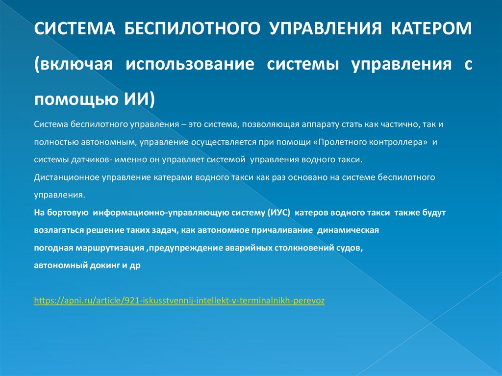 Дистанционное управление катерами водного такси как раз основано на системе беспилотного